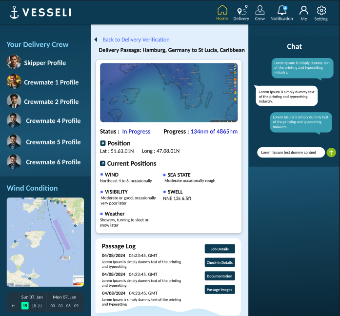 Vesseli offers vessel owners peace of mind and enhanced security through a comprehensive platform that centralizes all delivery and governance aspects. It provides real-time vessel tracking, live passage logs for compliance, and direct communication, all supported by thorough vessel checks, validation, and a review system to bolster confidence.